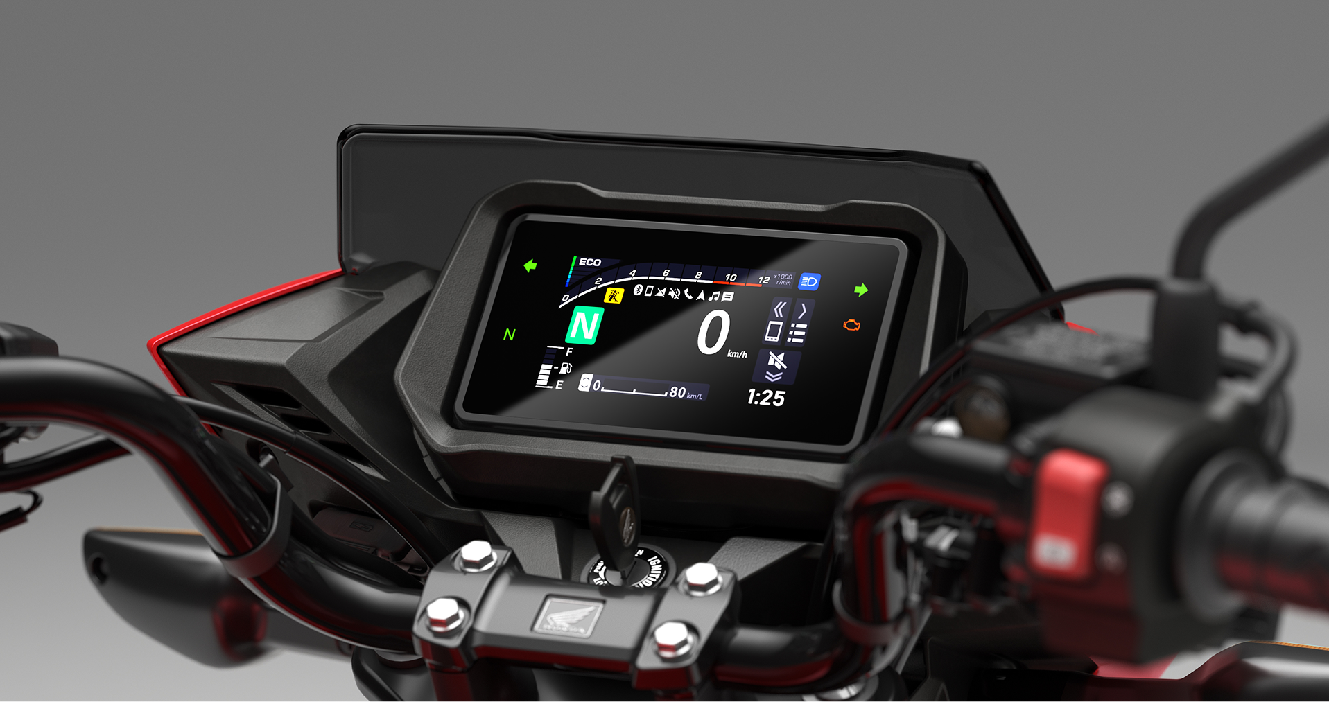 Zostaňte v kontakte počas jazdy. Vďaka Honda RoadSync môžu jazdci na CB125F pristupovať k základným funkciám na cestách – pridávajú každodenné pohodlie na každú cestu.